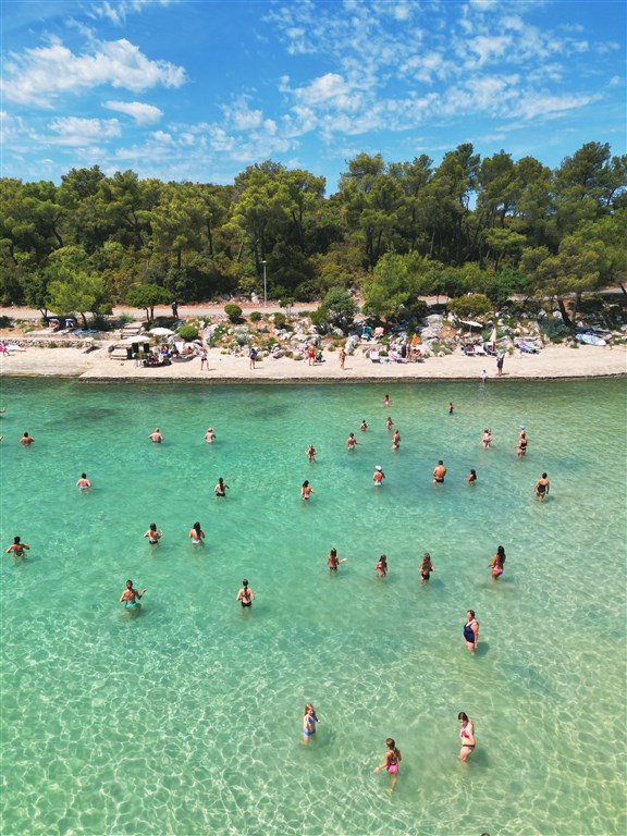 zalesněný uzavřený resort • přímo u pláže • písečná a oblázková pláž • sprchy na pláži • lehátka a slunečníky za poplatek