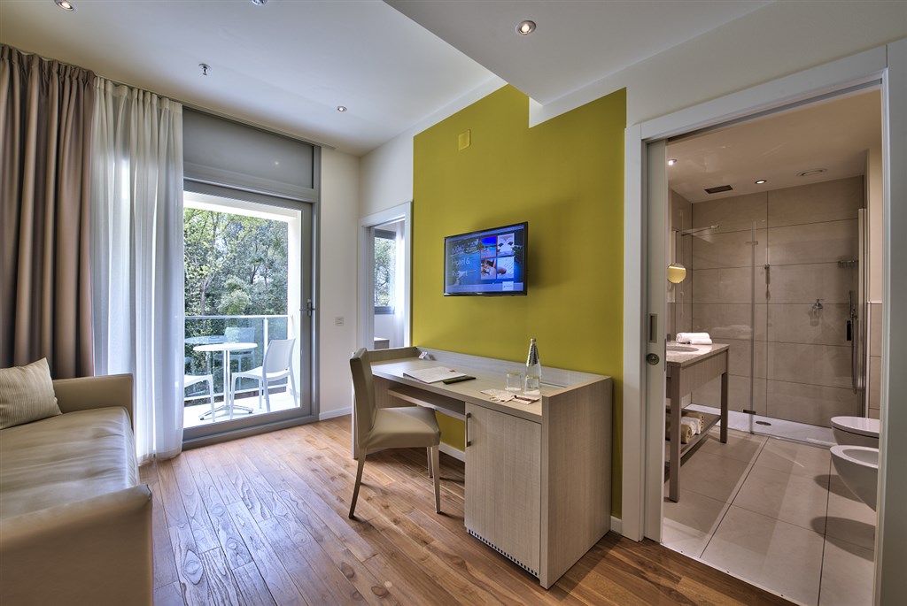 apartmány a vily • sprcha/WC • fén • telefon • trezor • SAT TV • minibar • klimatizace • balkon • trezor • WiFi • POKOJE - dvoulůžkové pokoje • možnost přistýlky pokoje • APARTMÁNY - pro 6 osob • dvě dvoulůžkové ložnice • obývací místnost s rozkládacím gaučem pro dvě osoby • vybavená kuchyňka