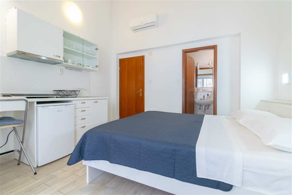 STUDIO pro 2 os. - jedna místnost s kuchyňským koutem, manželská postel (160x205) • APARTMÁN pro 2 os. - dvoulůžková ložnice s manželskou postelí (160x205), obývací místnost s kuchyní • APARTMÁN pro 4 os. - dvoulůžková ložnice s manželskou postelí (160x205), obývací místnost s rozkládacím gaučem (150x200) a velkou kuchyní, dva balkony