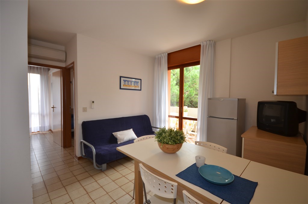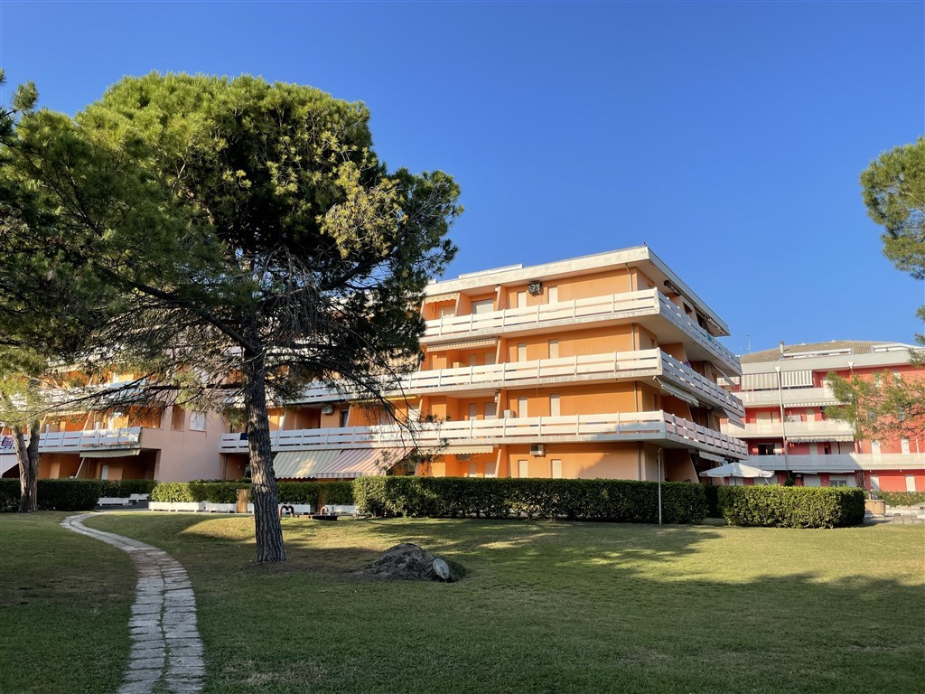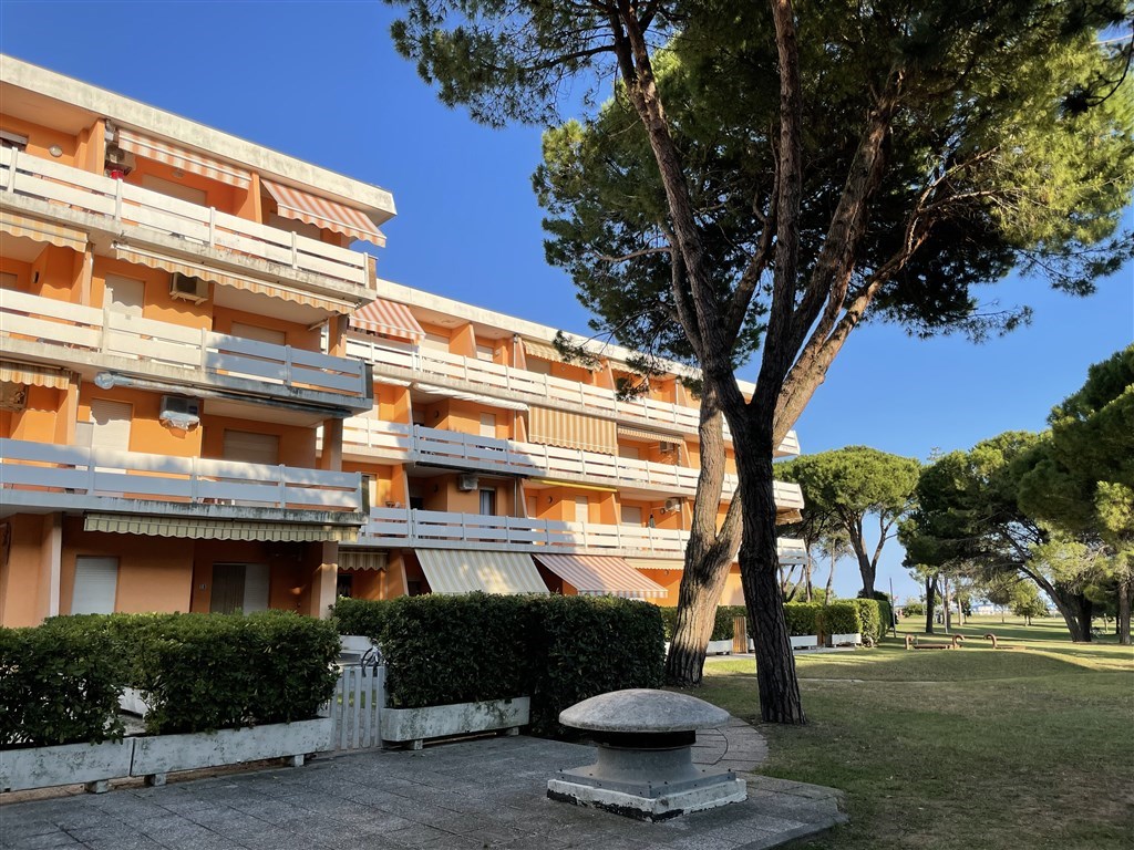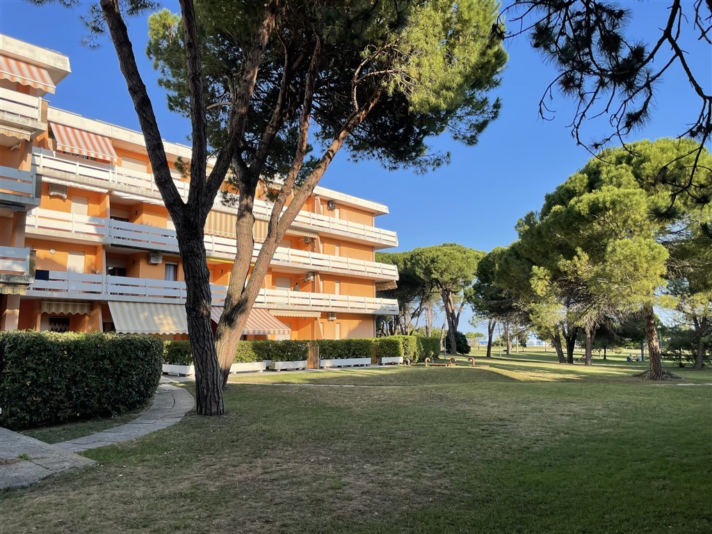 Apartmánový dům v první linii u pláže ve velmi klidné oblasti Lido dei Pini. Apartmánový dům je obklopený nádhernou zelení a je ideálním místem pro výlety k majáku a také pro milovníky volné pláže bez slunečníků. V těsné blízkosti se nachází také oblíbená Psí pláž Pluto. I když je poloha na Bibione spíše okrajová, jen pár desítek metrů se nachází krásná pěší promenáda vedoucí do centra Bibione se spoustou obchůdků, restaurací a zmrzlináren nebo osvětlená udržovaná promenáda podél pláže vhodná pro cyklisty, běžce či na nezapomenutelné procházky při východu či západu slunce. Atollo sousedí s apartmánovým domem Landora