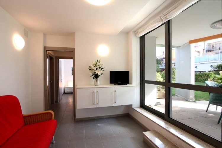Trilo 6 superior - 1 ložnice s manželskou postelí, 1 ložnice se dvěma oddělenými lůžky, částečně zrekonstruovaný obývací pokoj s kuchyňským koutem a rozkládacím gaučem pro 2 osoby, sociální zařízení, terasa. (jedná se o apartmány umístěné od 6. do 9. patra)