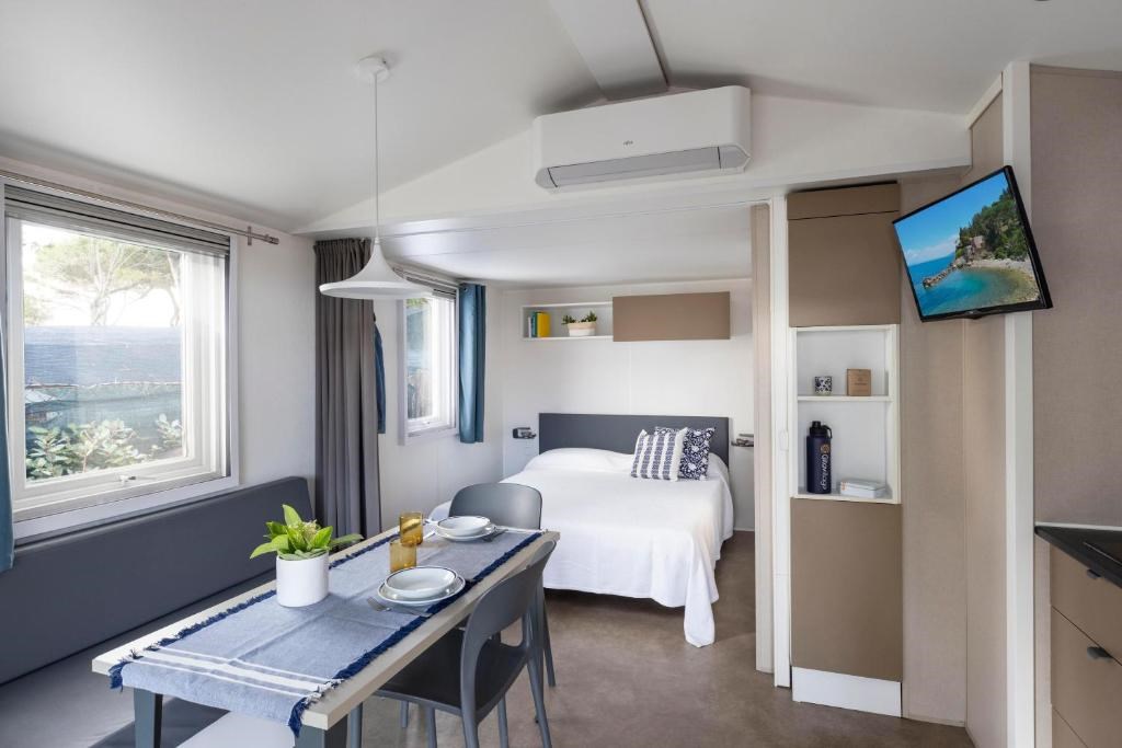 apartmány typu Villino Superior Giglio, Villino Superior Giannutri, Lodge Comfort a Lodge Superior • APARTMÁNY Villino Superior Giglo pre 4 osoby sa nachádzajú na prízemí, resp. na 1. poschodí • APARTMÁNY Villino Superior Giannutri pre 4 osoby sú rozlohovo menšie ako Villino Giglio • všetky majú spálňu s manželskou posteľou a obývaciu miestnosť s kuchynkou a 2 lôžkami •sociálne zariadenie • sušič na vlasy • klimatizácia • TV • balkón, resp. terasa •MOBILHOME Lodge Comfort pre 4 osoby (z ekologického materiálu) • majú spálňu s manželskou posteľou • druháspálňa s oddelenými lôžkami • sociálne zariadenie • vstupný priestor s kuchynským kútom • drevená terasa • MOBILHOME Lodge Superior pre 4 až 5 osôb (5. lôžko len na vyžiadanie za príplatok) sú o niečo väčšie ako Mobilhome Lodge Comfort